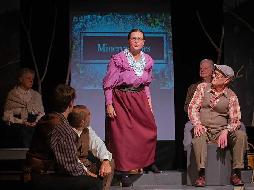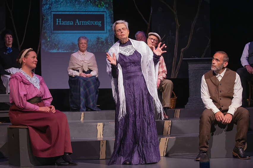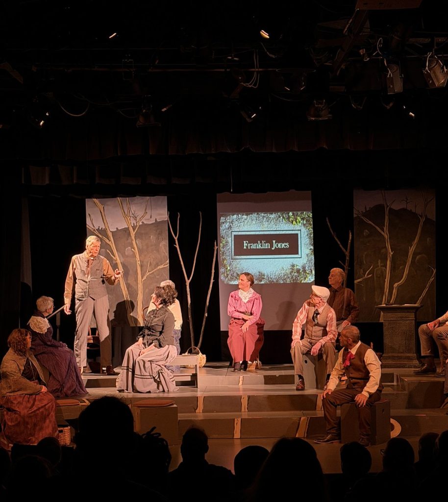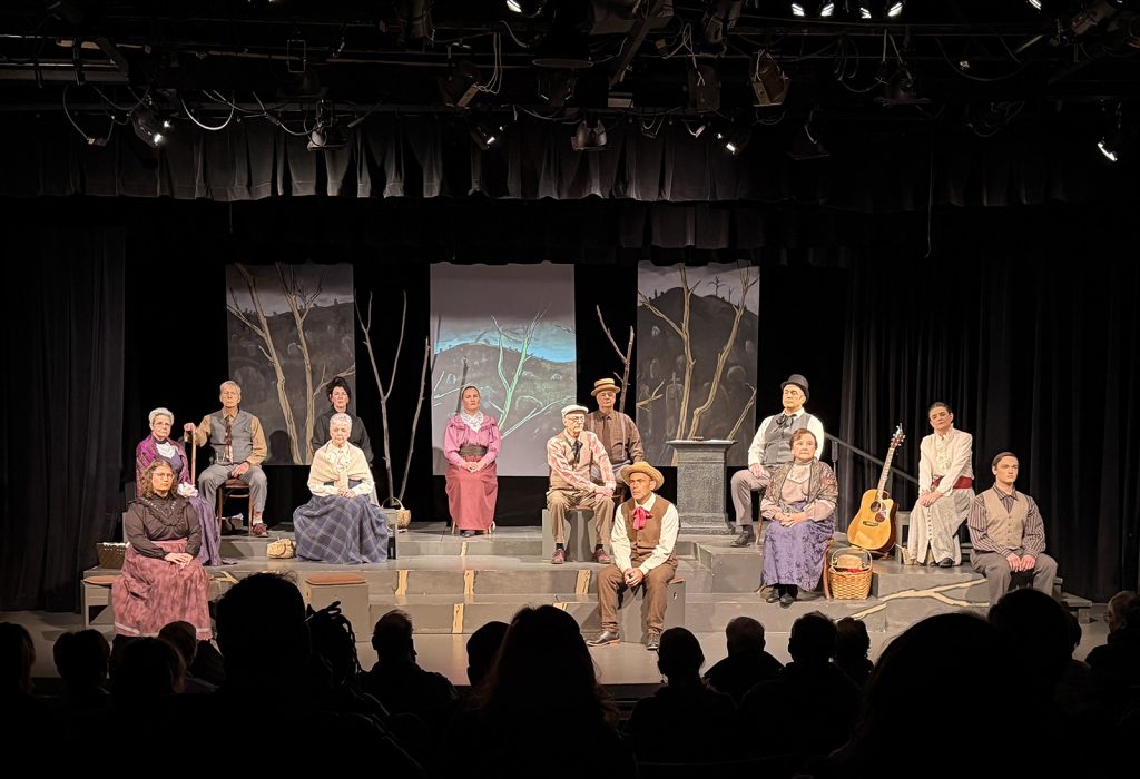 The actors play several characters, delivering monologues, or epitaphs, revealing their joys, regrets, and secrets. Woven into the production are folk songs and other musical interludes. Through these monologues, the play offers a critique of small-town life, exposing hypocrisy, social injustice, and the often-hidden struggles of individuals within a community–and yes–humor.