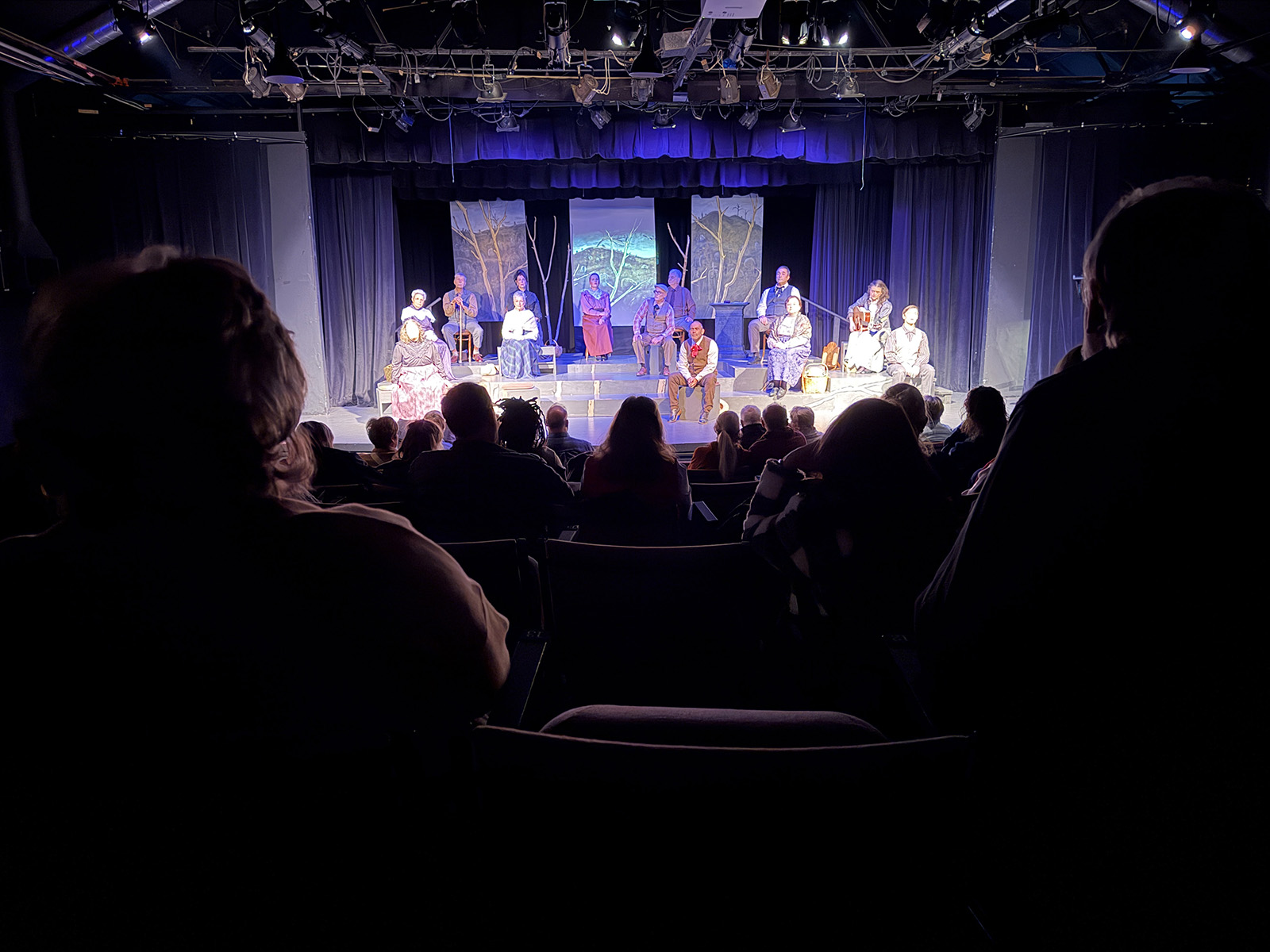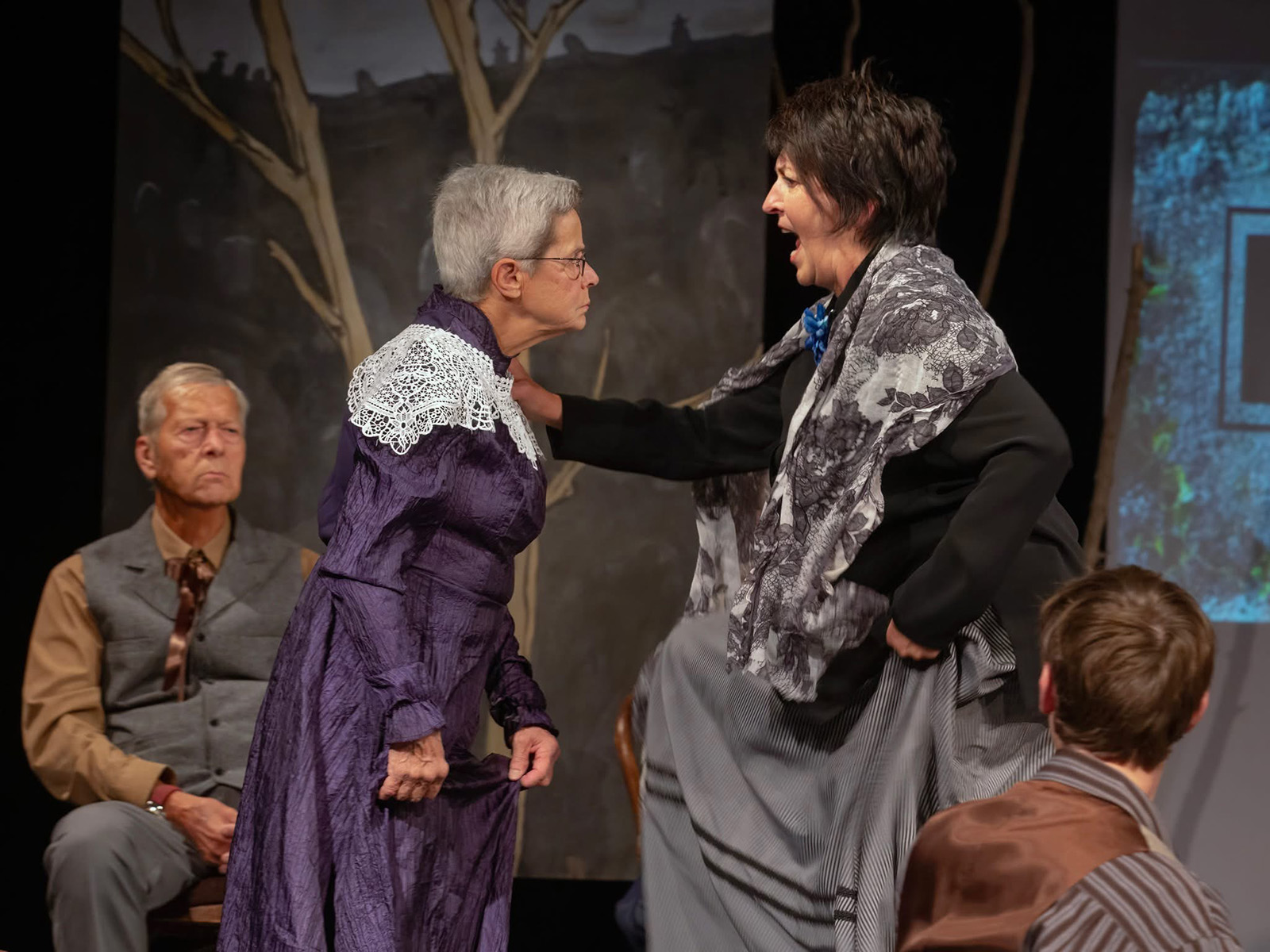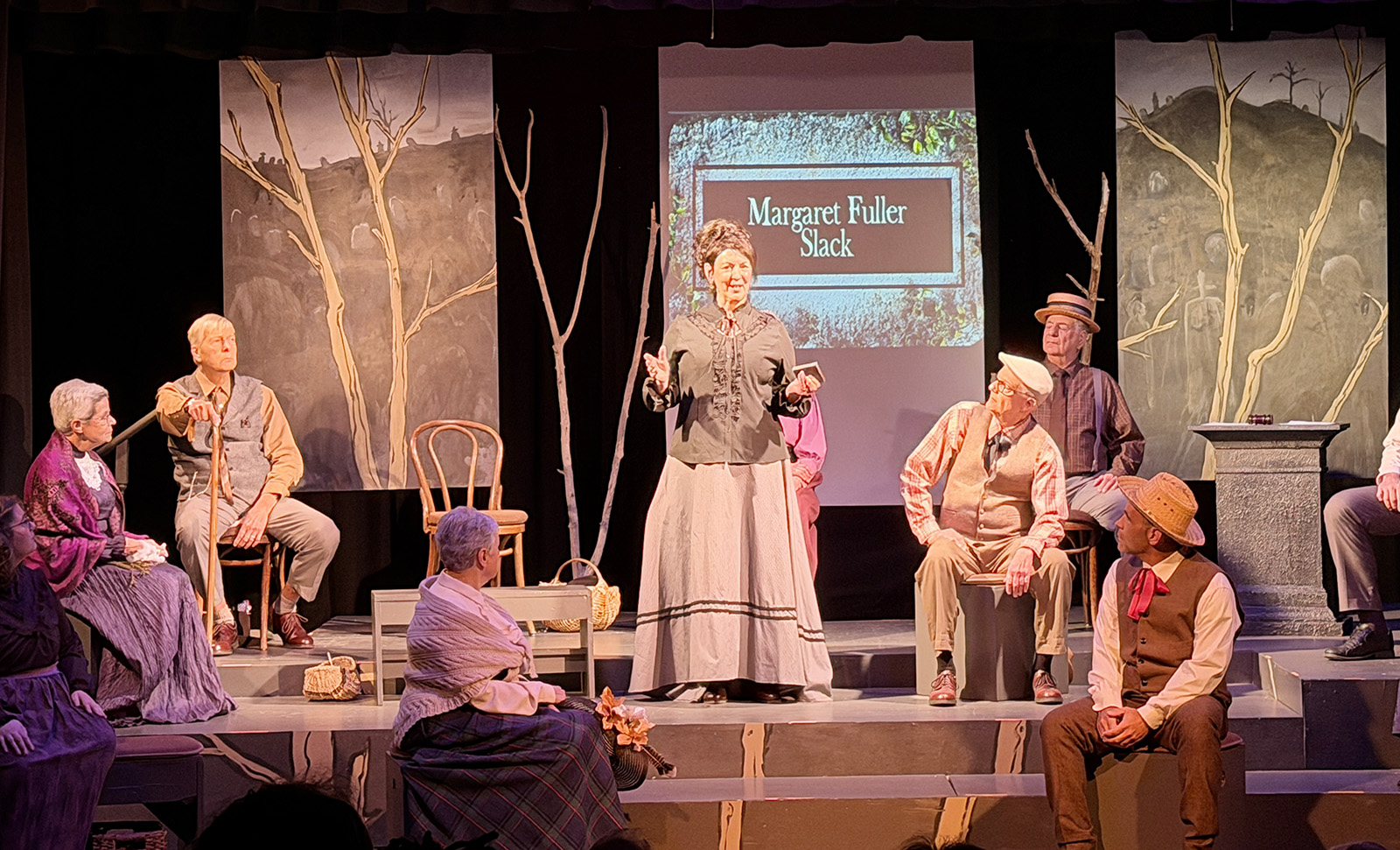 The actors play several characters, delivering monologues, or epitaphs, revealing their joys, regrets, and secrets. Woven into the production are folk songs and other musical interludes. Through these monologues, the play offers a critique of small-town life, exposing hypocrisy, social injustice, and the often-hidden struggles of individuals within a community–and yes–humor.